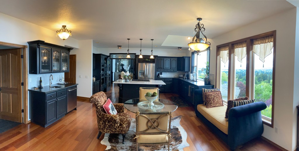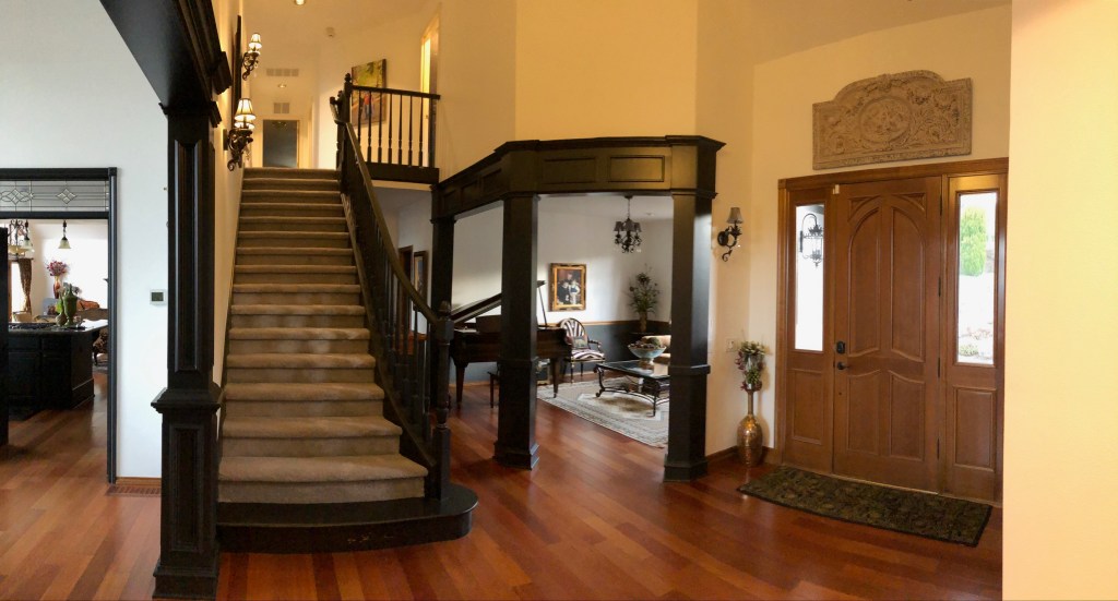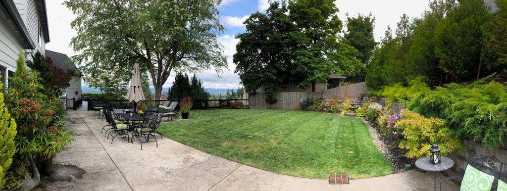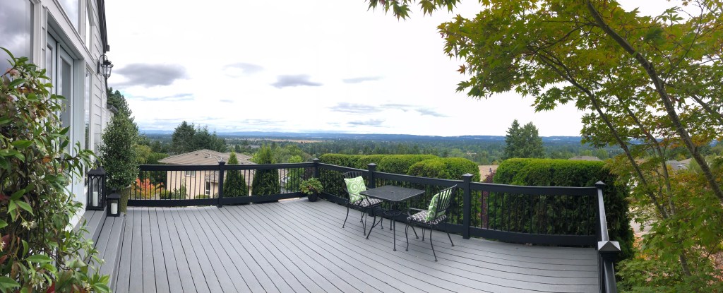 Our primary search criteria for a new house were Master on the main level, a large private yard, and existing space or ability to add on to bring our company home. After a more than two year search, we found those qualities and more in this house – a nearly acre lot, an incredible view of the valley (from the Sunset Hills to the Coastal Range) and two mountain tops (St. Helens and Adams), and no HOA. Ironically, it was only a few blocks from our current house. However, there were many negatives as well – deferred maintenance including roof, poorly designed and not maintained landscaping, dated or wrong finishes in woodwork, flooring, granite, lighting, and hardware. I will never forget my daughter’s saying at her first viewing, “how can you possibly like or buy this house”. We were able to look past the visible and see the potential. We purchased the home in 2015 for the positives, hoping we could, over time, correct the negatives.