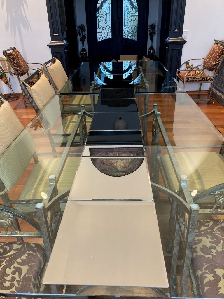 We started by clearing the table and giving it a good clean. I had actually chipped the underside of the one glass top and so we flipped it around to hide it under the center placemat. No sense buying new glass when the decor will hide it for years to come!