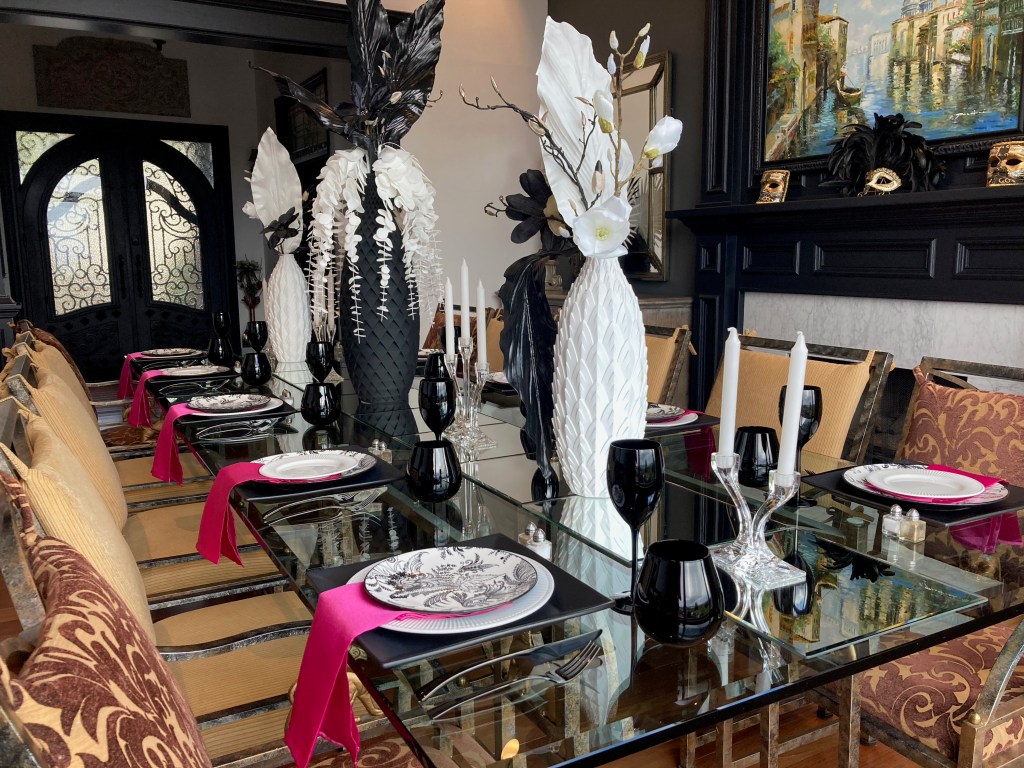 For Mother’s Day, I exchanged the black napkins with a fuchsia pink. What a beautiful transformation!