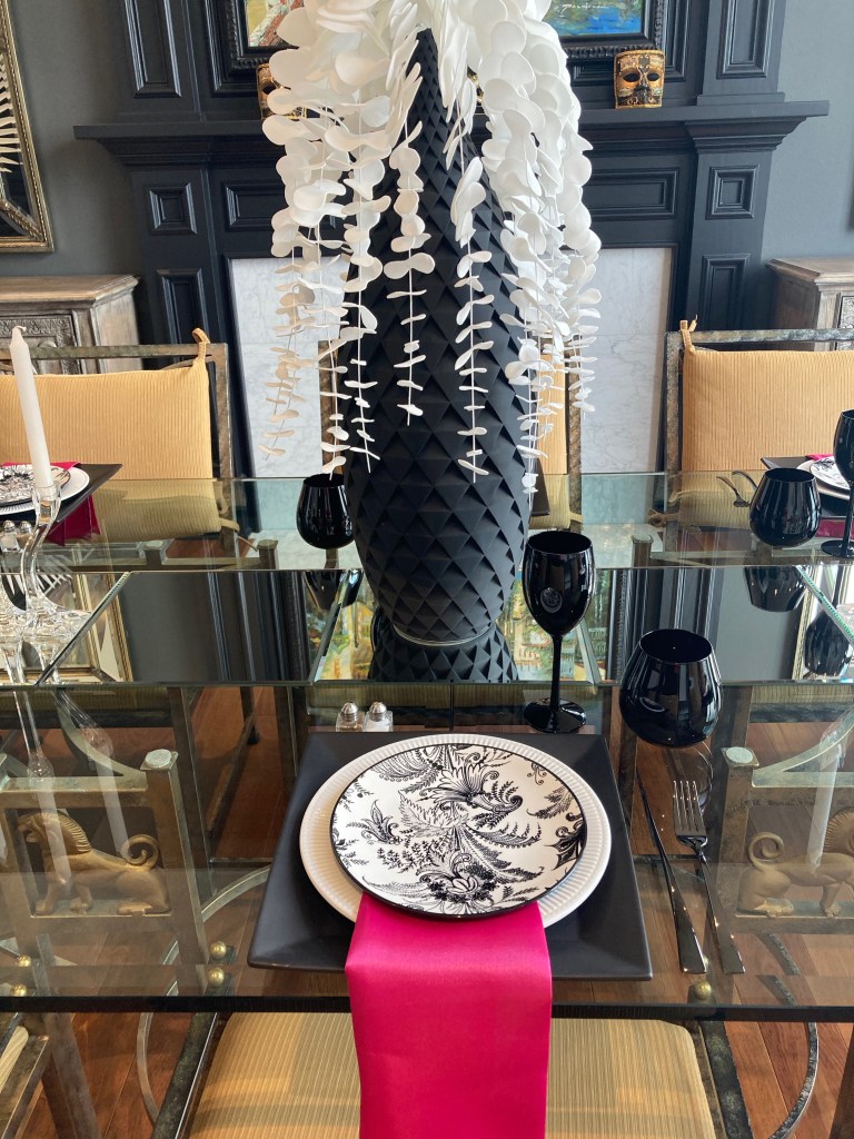 The beauty of decorating with Black & White (see previous article) is the ease of changing the look with a POP of Color. It is as simple as changing out the napkin!