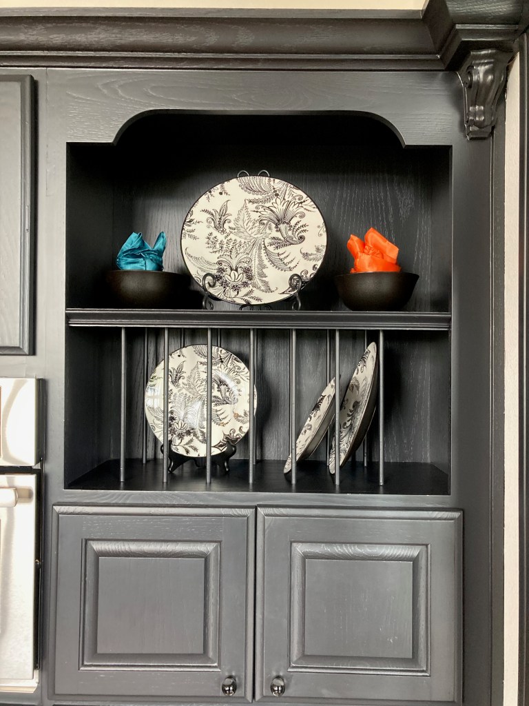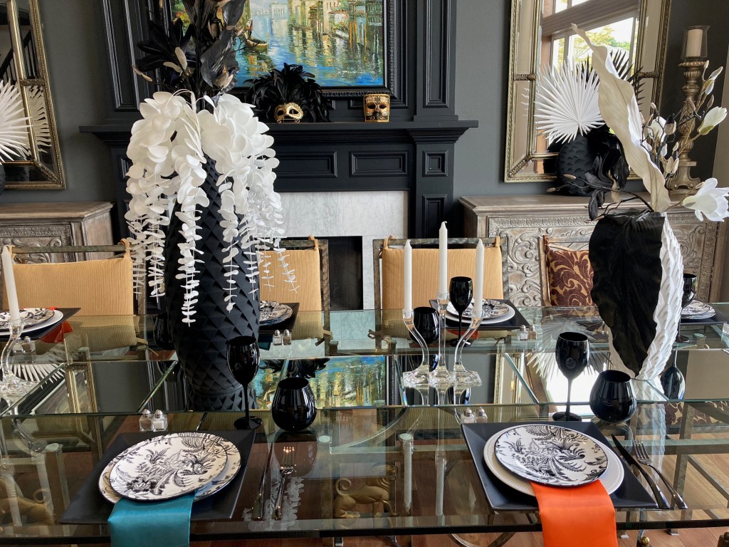 Note: Previously, I alternated the place settings with white dinner plates and salad plates. While a lovely look, it was more out of necessity as 4 dinner plates and 4 salad plates were on long-term back order due to the current supply chain issues. In these pictures, you will note that the salad plates arrived. I’m still waiting on the dinner plates, but life marches on!