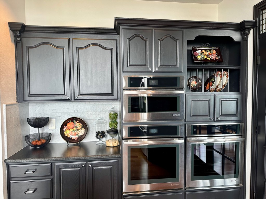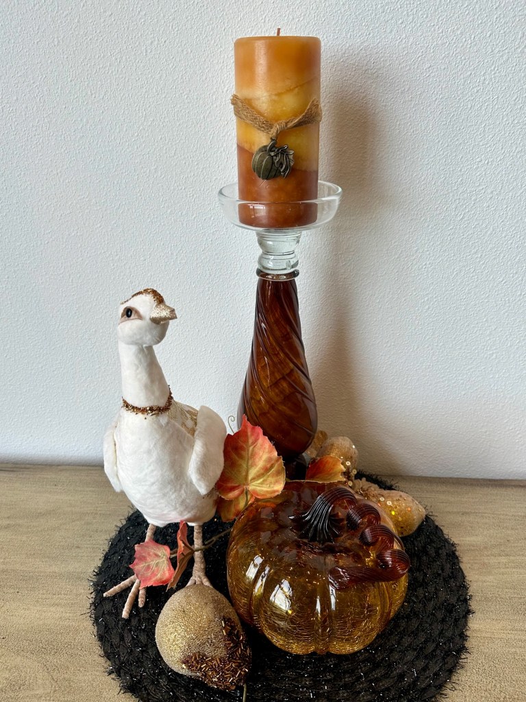 I don’t usually use scented candles, but these pillar candles are pumpkin spice. Years ago I bought them for their variegated color and metal pumpkin accent. (TIP: I store all my candles in a temperature controlled environment. I wrap scented candles in thin foam to control and maintain them.) The scent of these candles is not overpowering and it exudes a warm fall aroma. Now that the scents and colors of Fall are infused throughout the home, I am ready to share this year’s Bountiful Harvest with friends and family over the coming months!