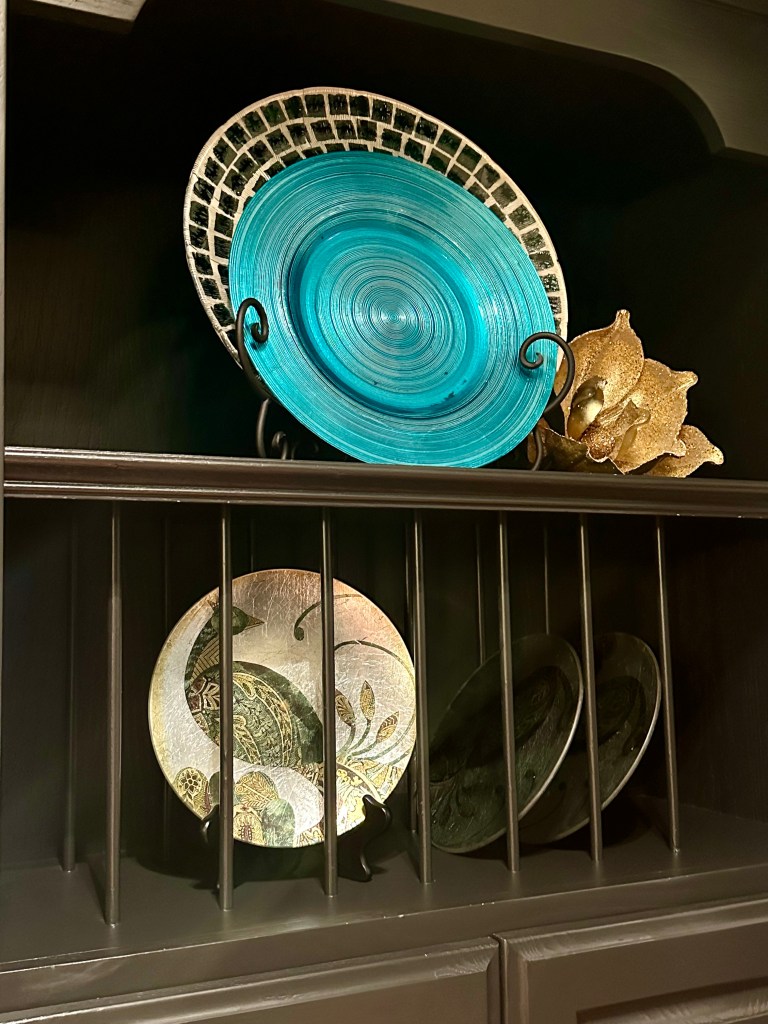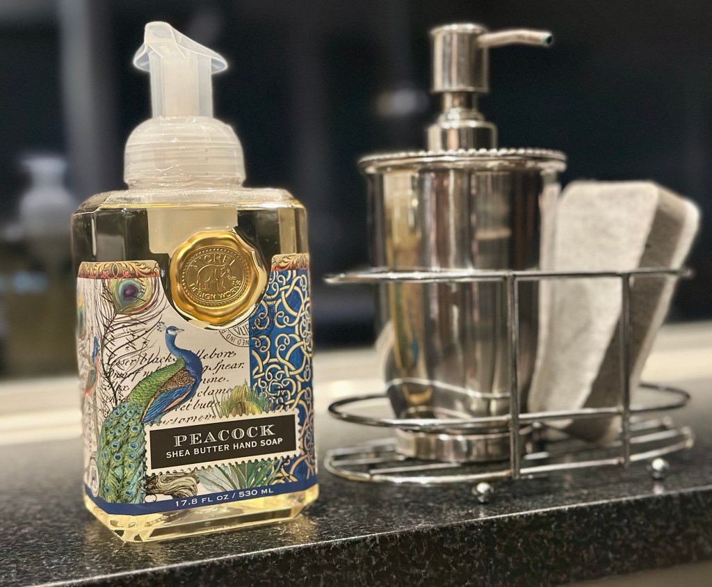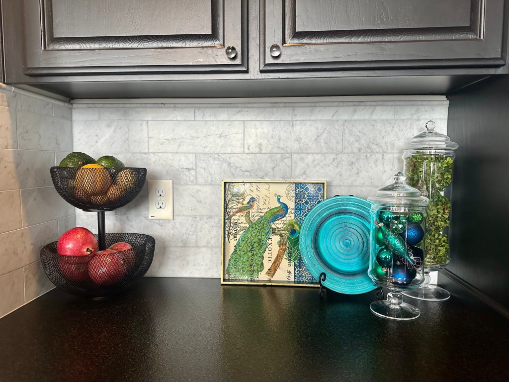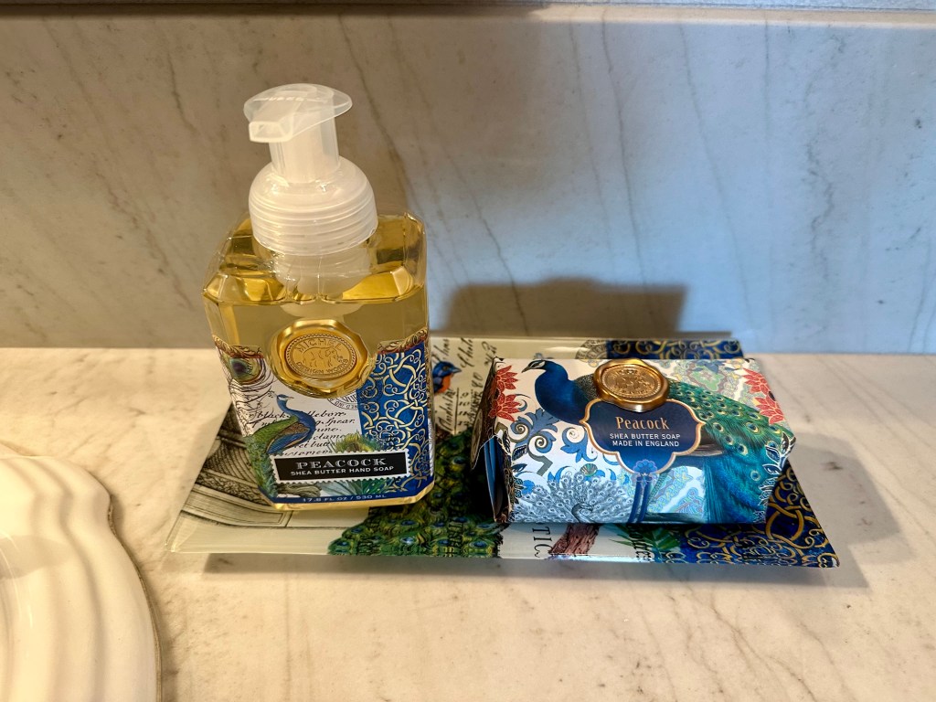 Note: After posting the blog, I found the Michel Design Works Peacock tray I had purchased for this theme.